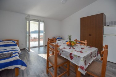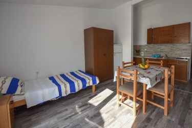 Apartment für 4 Personen, Terrasse, Meerblick, TV, WLAN-Internet, Parkplatz. "Apartment 5" befindet sich im 2. Stock des Hauses, es hat eine Terrasse mit Meerblick. Es hat ein Schlafzimmer mit einem Doppelbett 160x190 cm, ein Wohnzimmer mit Küche und ein Badezimmer. Im Wohnzimmer befinden sich zwei Betten mit den Maßen 90x190 cm.
