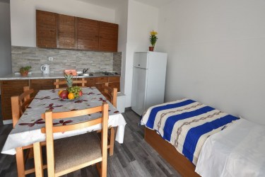 Appartamento per 4 persone, terrazzo, vista mare, TV, Internet Wifi, parcheggio. "Appartamento 4" si trova al 1. piano della casa, ha una terrazza con vista sul mare. Ha una camera da letto con letto matrimoniale 160x190 cm, un soggiorno con cucina e un bagno. Nel soggiorno ci sono due letti da 90x190 cm.